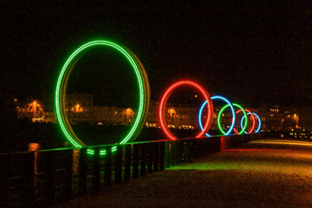 Par la suite, découvrez les Machines de l’Île. L’identité de la ville ! Inspirées de Jules Verne et Léonard de Vinci, ces machines reprennent l’identité et l’histoire industrielle de la ville. Nous vous conseillons tout particulièrement la machine de l’Éléphant et les anneaux de Buren. « Les anneaux de Buren » est une autre œuvre mythique du Voyage à Nantes. Placés sur l’île de Nantes, au niveau de l’espace dédié aux bars et aux boites de nuit, ils s’illuminent le soir venu et représentent le point de rassemblement d’une partie de la ville.