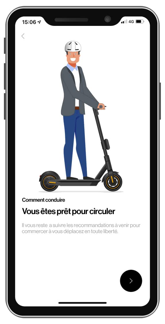 De la même manière que pour les plateformes que vous connaissez, vous pourrez facilement localiser la station et les trottinettes disponibles sur la carte de l’application mobile.